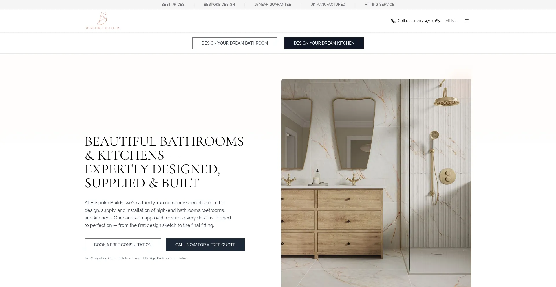 At Bespoke Builds, we're a family-run company specialising in the design, supply, and installation of high-end bathrooms, wetrooms, and kitchens.