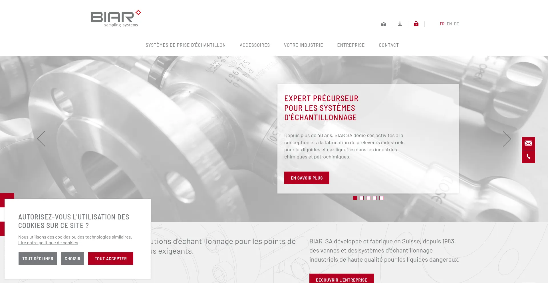 BIAR SA développe et fabrique en Suisse, depuis 1983, des vannes et des systèmes d'échantillonnage industriels pour les liquides dangereux.