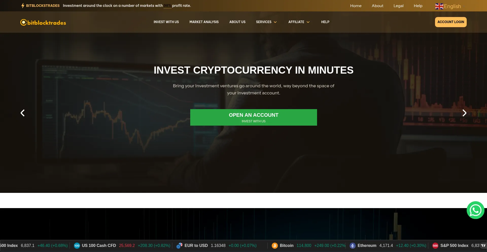 Bitblockstrades offers a universal Market Trading. We are the best stock & crypto Investment platform with lowest fees operating since since 2012.