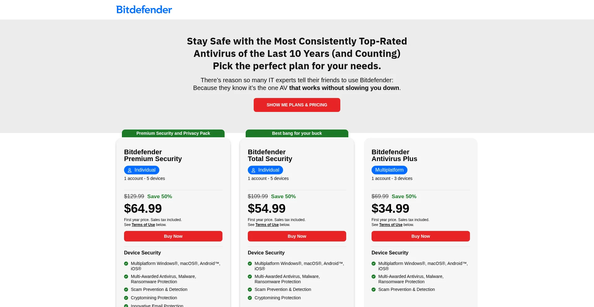 Stay Safe with the Most Consistently Top-RatedAntivirus of the Last 10 Years (and Counting)Pick the perfect plan for your needs.