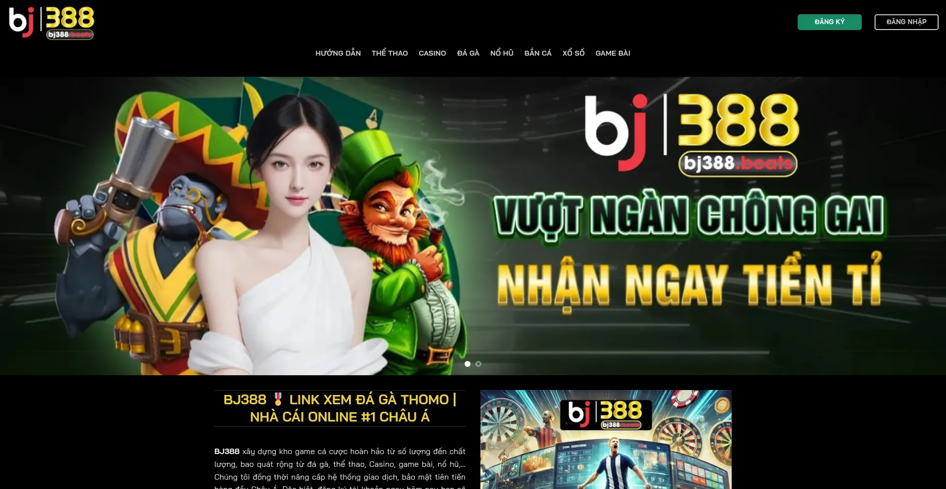 BJ388 là nhà cái độc quyền đá gà Thomo trực tuyến số 1 Việt Nam, ngoài ra còn sở hữu kho game cá cược khủng như thể thao, Casino, nổ hũ, gam...