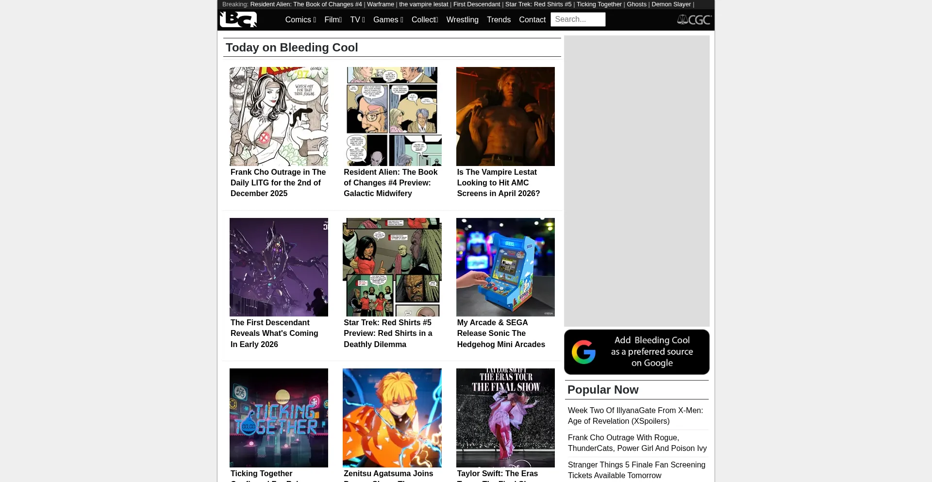 Bleedingcool.com Reseña del sitio web