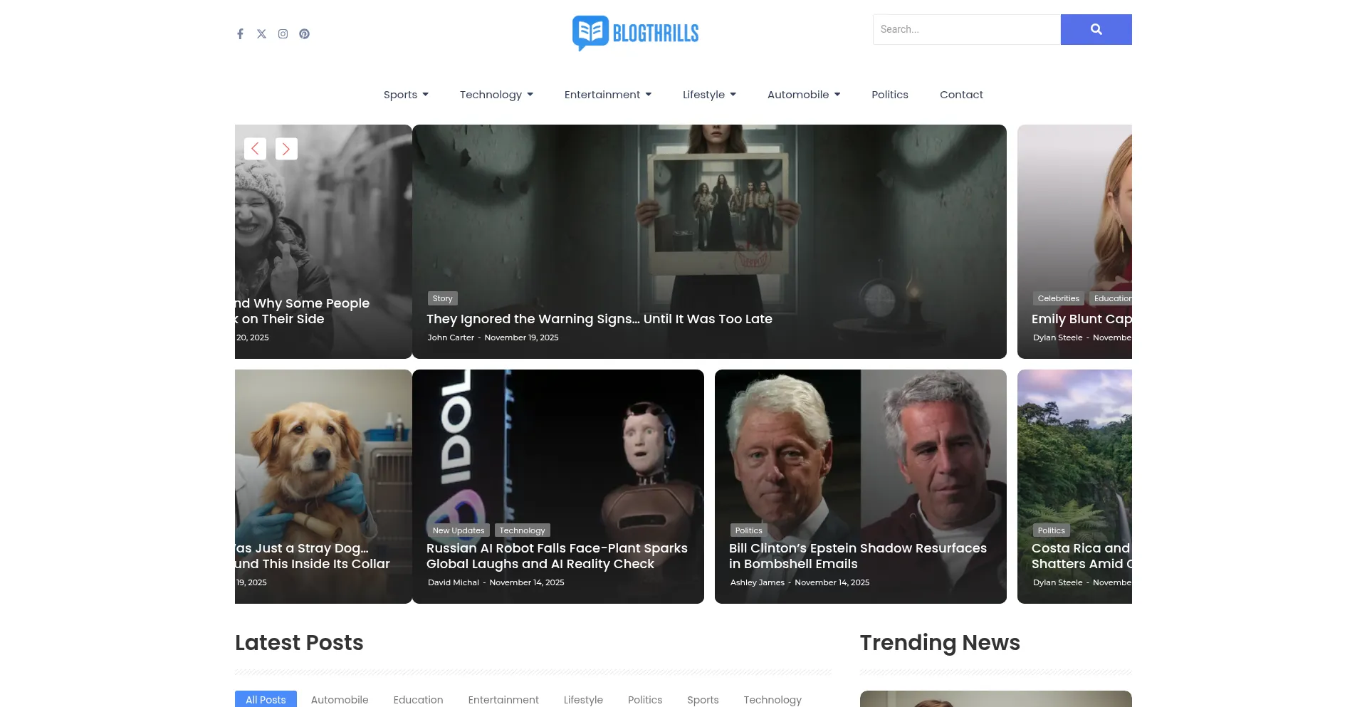 La presencia de enlaces de redes sociales en el sitio web indica que blogthrills.com mantiene cuentas oficiales en redes sociales, lo que es un indicador positivo de credibilidad y compromiso.