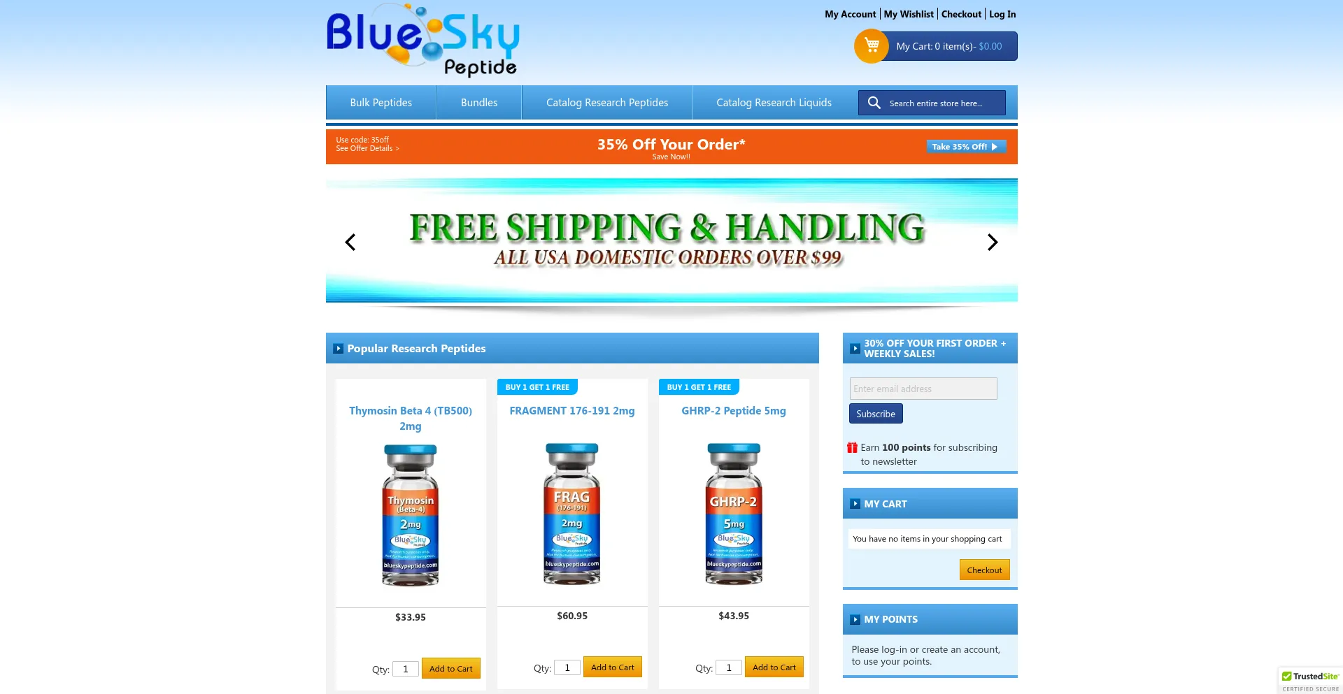 Blueskypeptide.com Reseña del sitio web