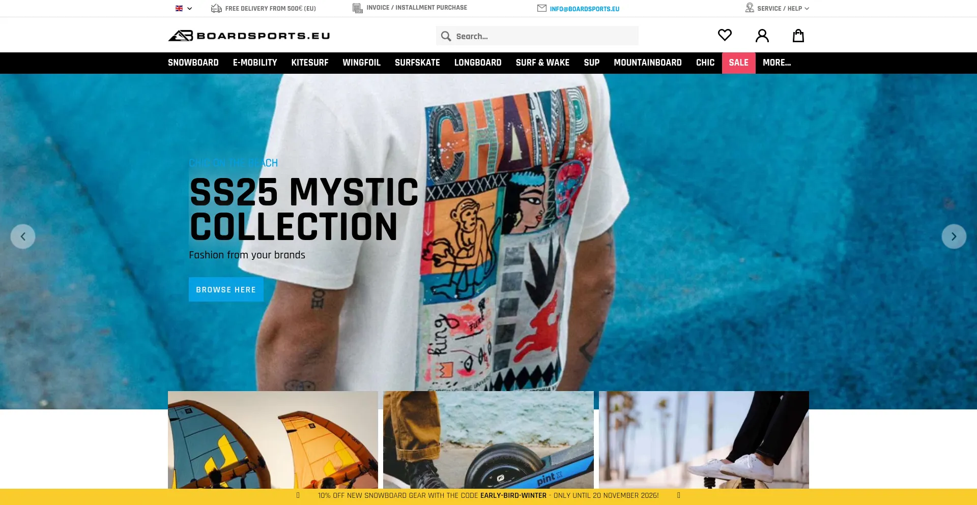boardsports.eu, the online board store with huge selection - Kitesurf ✓ Surfskate ✓ SUP ✓ Longboard ✓ Wing ✓ Snowboard ✓ Mountainboad ✓