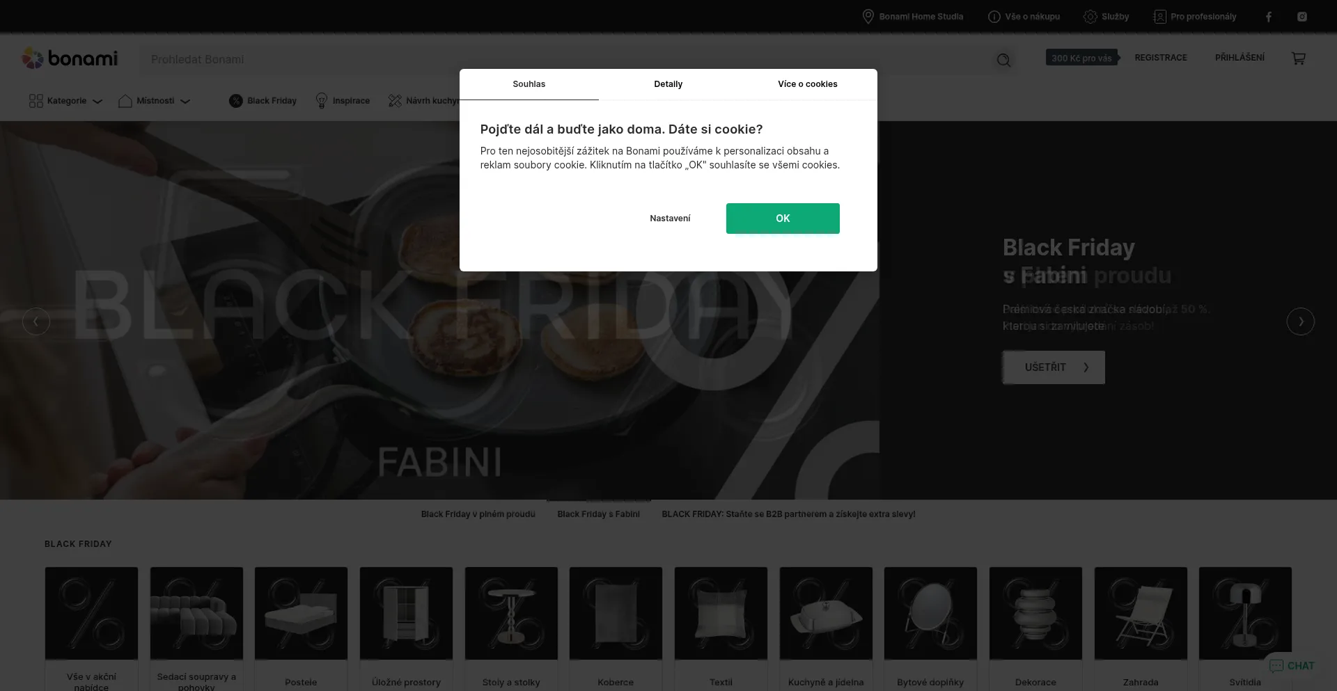 El sitio web implementa mecanismos de consentimiento de cookies en cumplimiento con regulaciones de privacidad como GDPR o CCPA. Esto demuestra que bonami.cz adhiere a estándares de protección de datos y proporciona a los usuarios control sobre prácticas de recolección de datos personales.