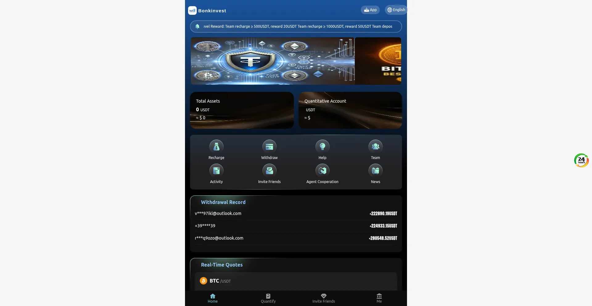 Bonkinvest.com opera una plataforma financiera fraudulenta promoviendo oportunidades de inversión engañosas con promesas de retornos irreales. El análisis de seguridad indica que la plataforma emplea tácticas consistentes con esquemas Ponzi y fraude de tarifa anticipada diseñados para extraer fondos de usuarios e información personal.