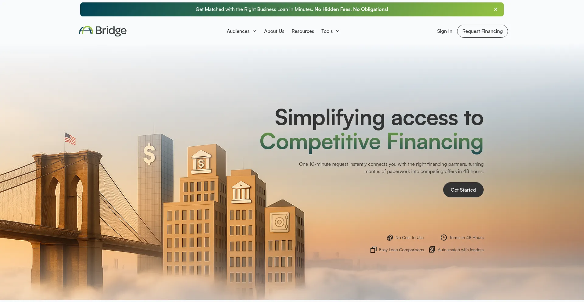 Bridge matches you with the right lenders for your business through one simple request. No hassle, no brokers, no hidden fees.