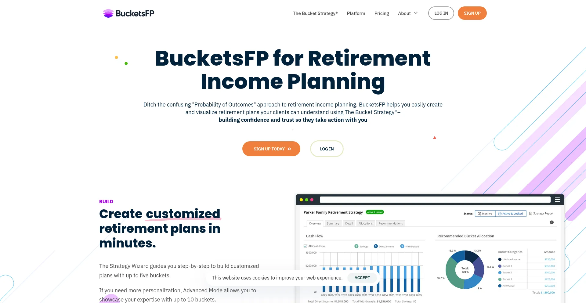 BucketsFP helps you easily create and visualize retirement plans your clients can understand using The Bucket Strategy®. Sign up today.