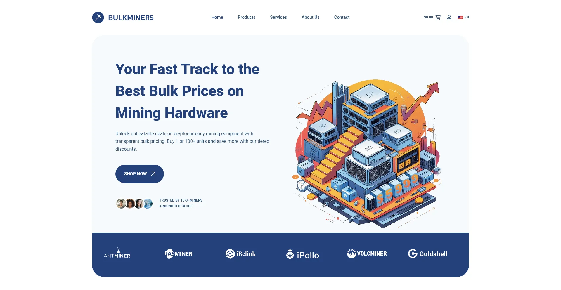 Discover unbeatable bulk prices on cryptocurrency mining hardware at BulkMiners. Enjoy transparent pricing, dropshipping, and manufacturer warranties. Shop now for top-tier ASIC...