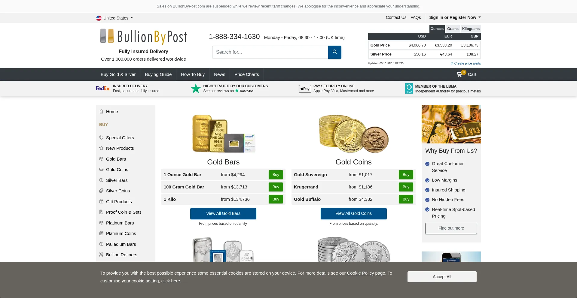 Buy Gold & Silver Online - Free Insured Shipping | BullionByPost.com