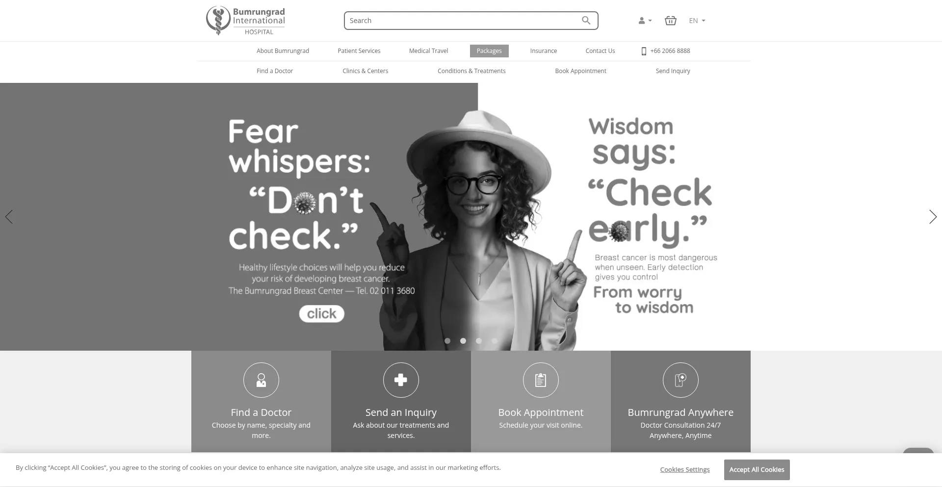 El sitio web implementa mecanismos de consentimiento de cookies en cumplimiento con regulaciones de privacidad como GDPR o CCPA. Esto demuestra que bumrungrad.com adhiere a estándares de protección de datos y proporciona a los usuarios control sobre prácticas de recolección de datos personales.