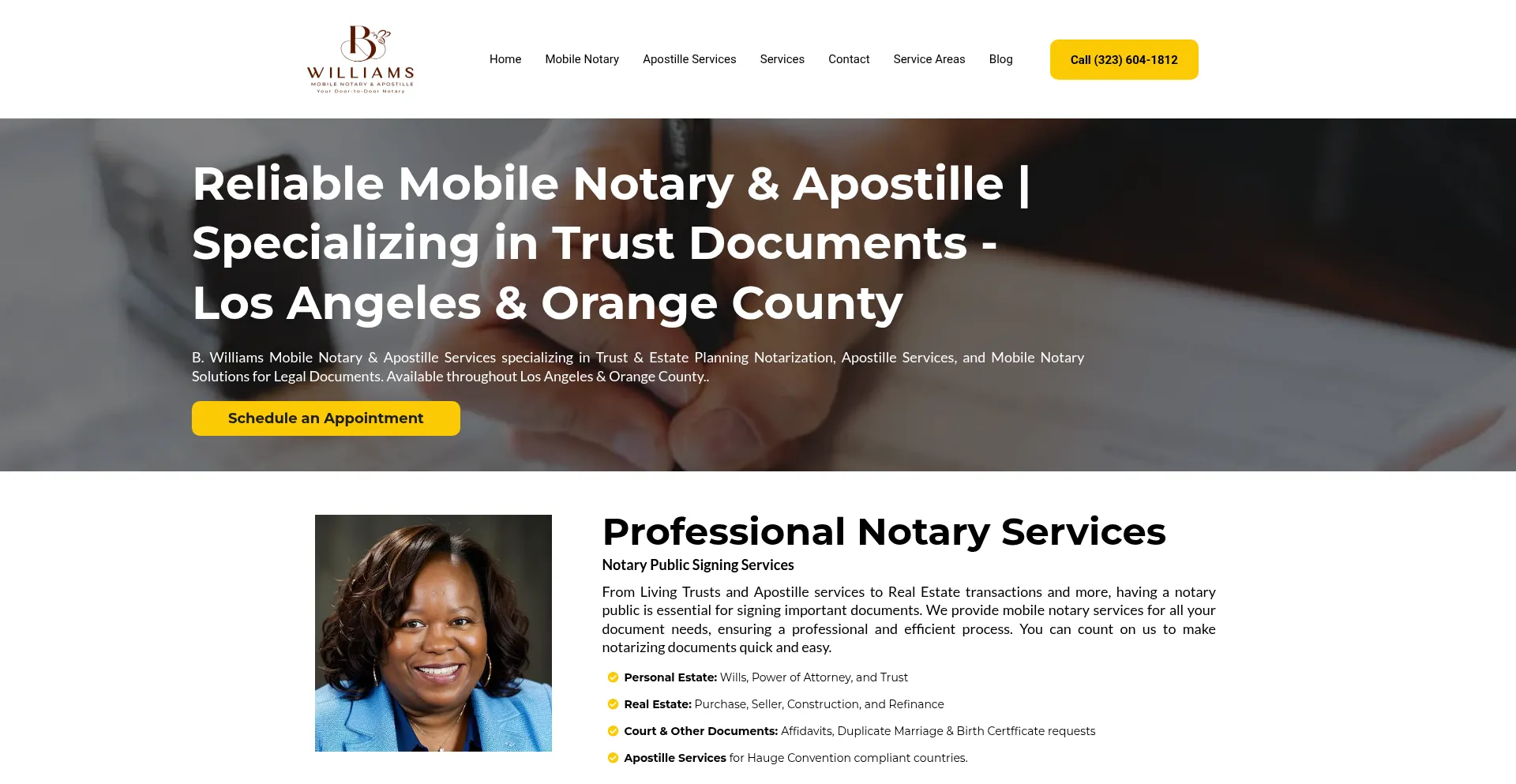 Mobile Notary Services & Apostille by B.Williams Notary Serving Los Angeles & Orange County California