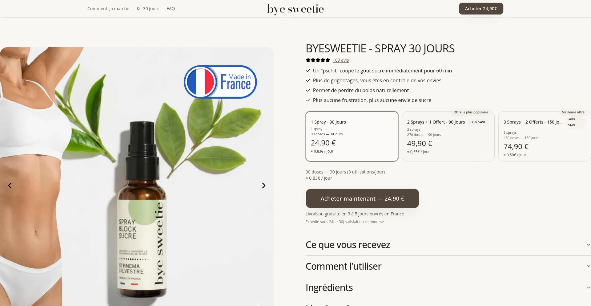 ByeSweetie | Spray anti-sucre & spray bloqueur de sucre