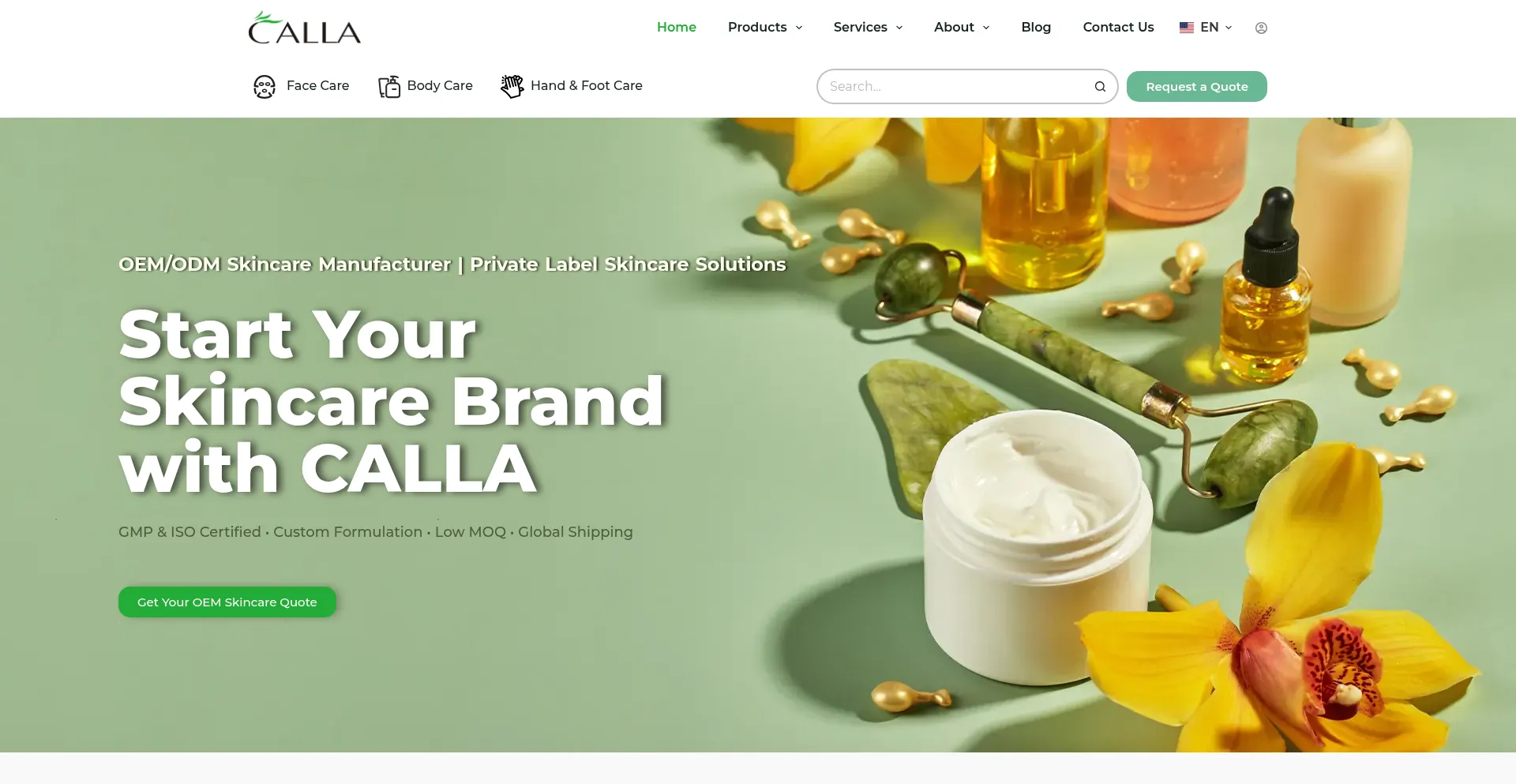 CALLA is a trusted skincare manufacturer offering OEM, private label, and custom skincare solutions for brands worldwide. Start your brand today.
