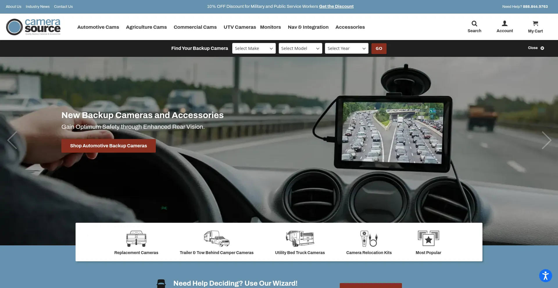 We have a wide selection of backup cameras, front and side cameras, 3rd brake light cameras, and both wired and wireless camera systems for your car or truck