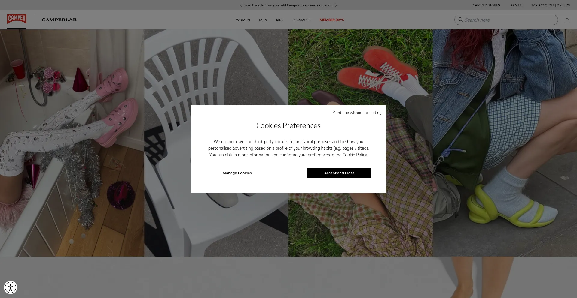 El sitio web implementa mecanismos de consentimiento de cookies en cumplimiento con regulaciones de privacidad como GDPR o CCPA. Esto demuestra que campeshoesautumn.com adhiere a estándares de protección de datos y proporciona a los usuarios control sobre prácticas de recolección de datos personales.
