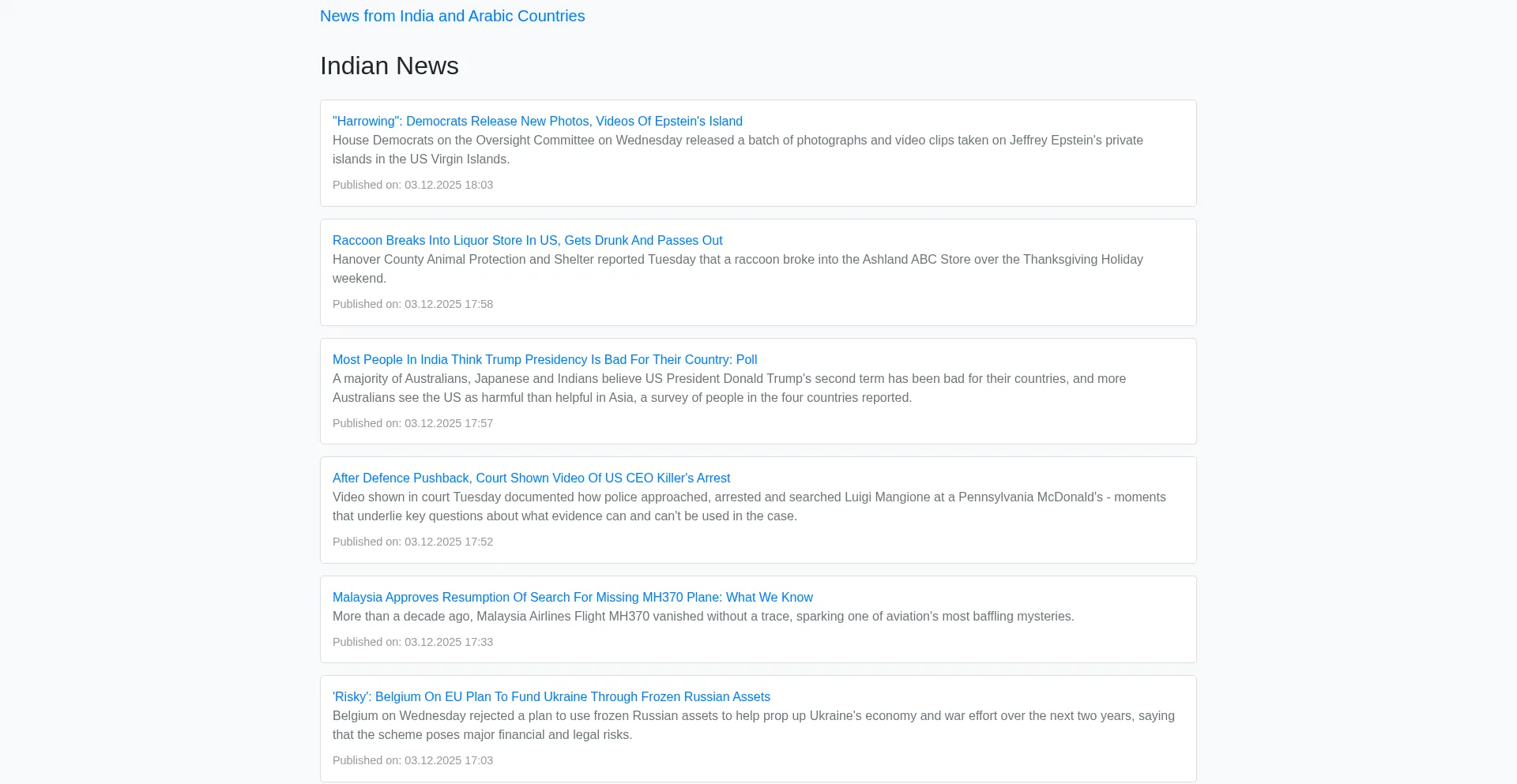 News from India and Arabic Countries