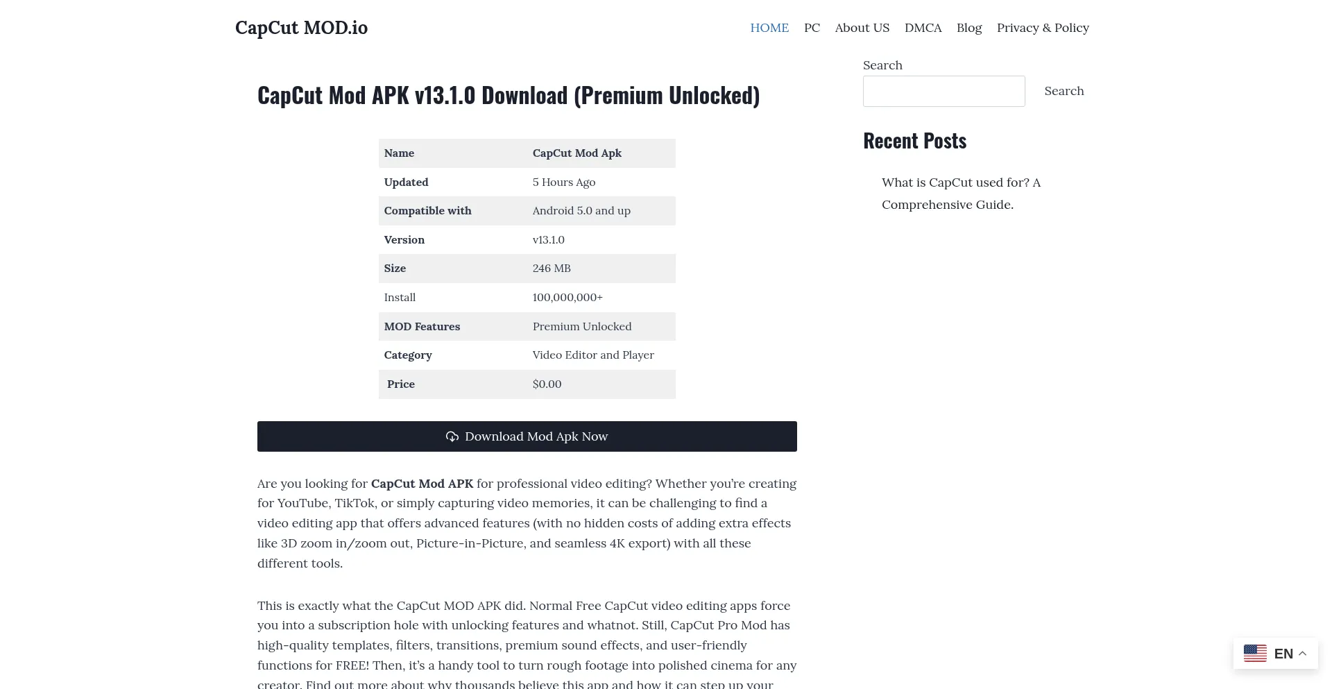 Capcutmod.io es un sitio web sospechoso debido a varias señales de alarma que lo hacen poco confiable. El sitio web puede contener información engañosa, participar en prácticas cuestionables o incluso alojar malware. También es difícil determinar quién realmente administra el sitio o cómo contactarlos.