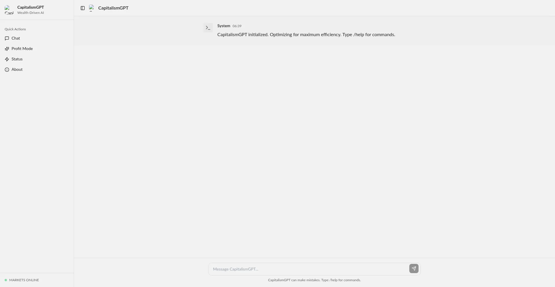 CapitalismGPT - The AI assistant focused on profit, growth, and market efficiency. Always optimizing for maximum value.