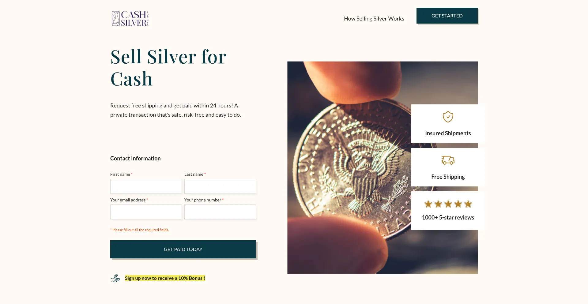 Cashforsilverusa.com Reseña del sitio web