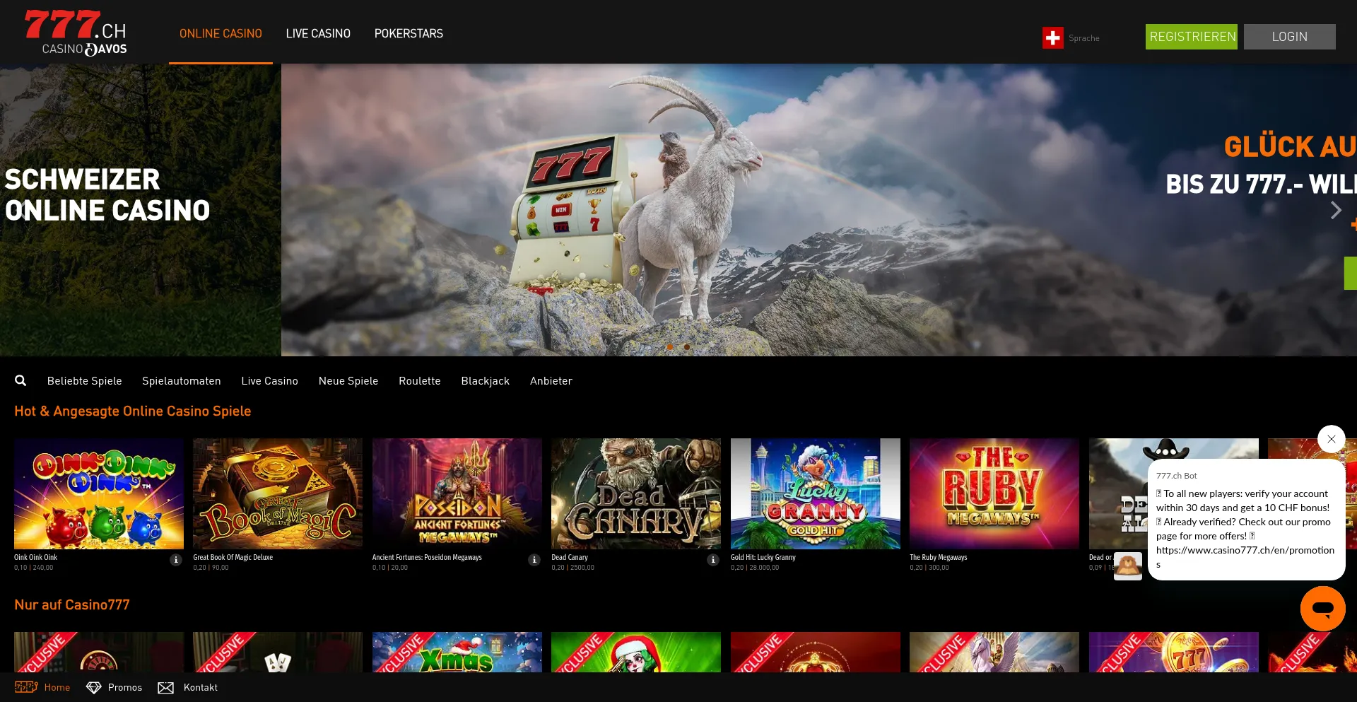 Das beste Schweizer Online Casino. Im Casino Online findest du Slots, Blackjack & mehr! Schau vorbei auf Casino777.ch !✅Bis zu 777 CHF Bonus ✅!