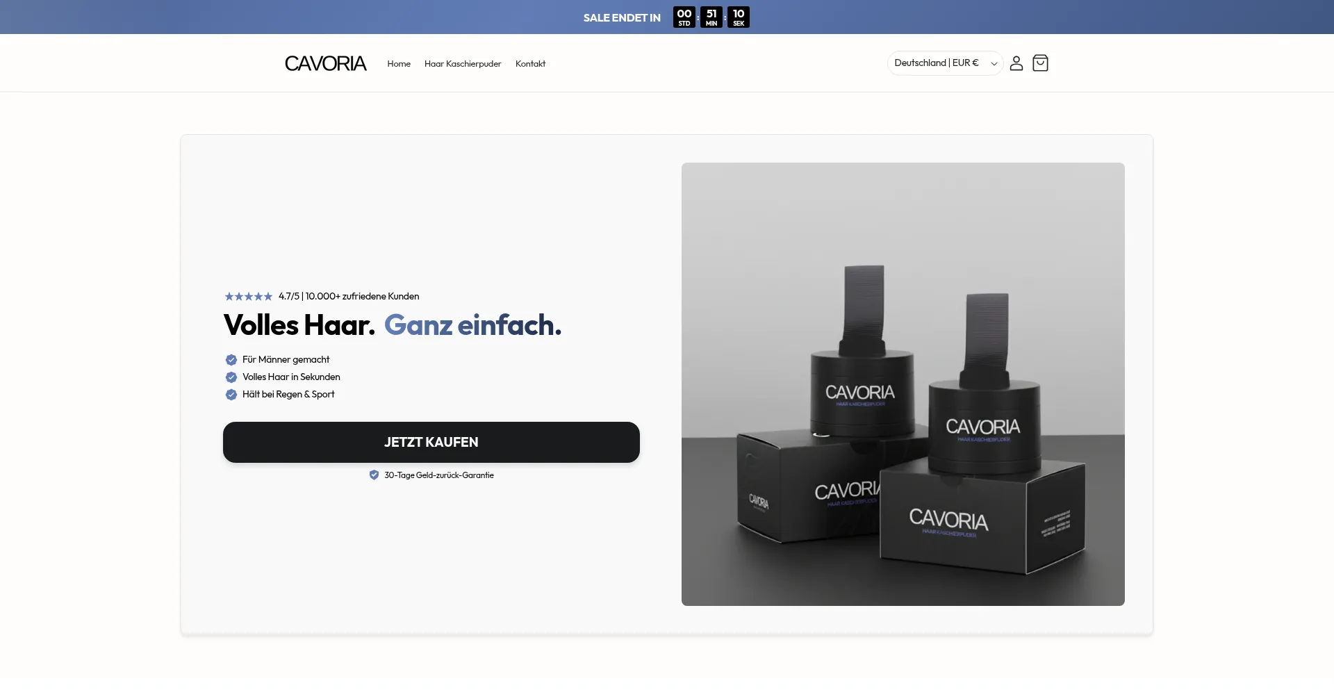 Cavoria Haar Kaschierpuder für Männer – in 10 Sekunden volles Haar. Wasserfest, unsichtbar & sicher. Jetzt bestellen & neues Selbstbewusstsein erleben!
