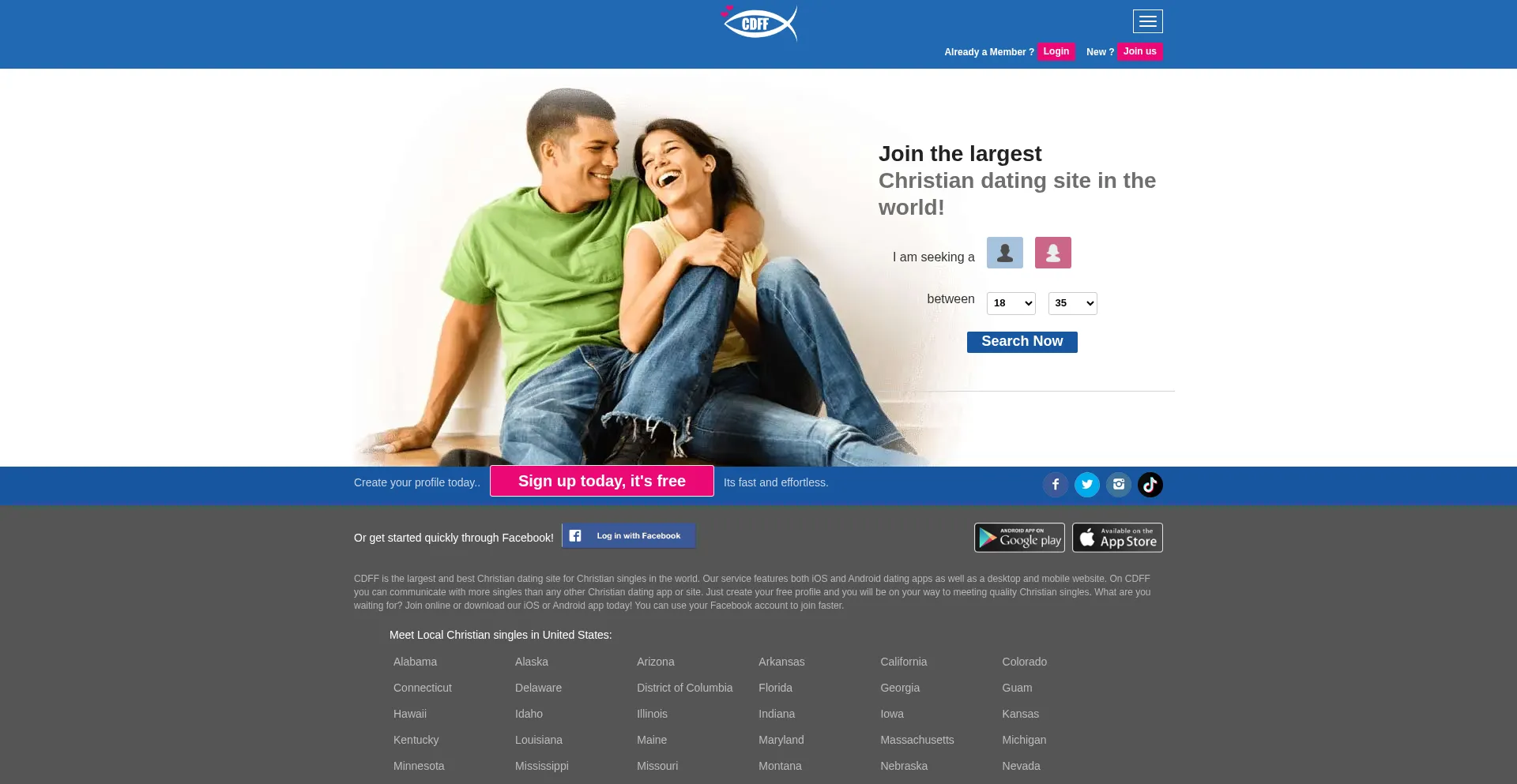 CDFF (Christian Dating For Free) Largest CHRISTIAN DATING app in the world. Matching Faith based singles since 2006. Find Christian singles near you!