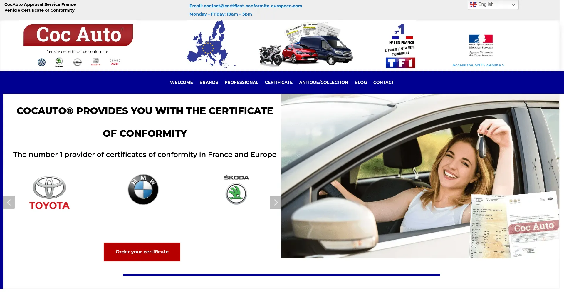 Coc Auto, leader sur les certificats de conformité. Commandez dès maintenant votre certificat de conformité officiel sur notre site sécurisé.