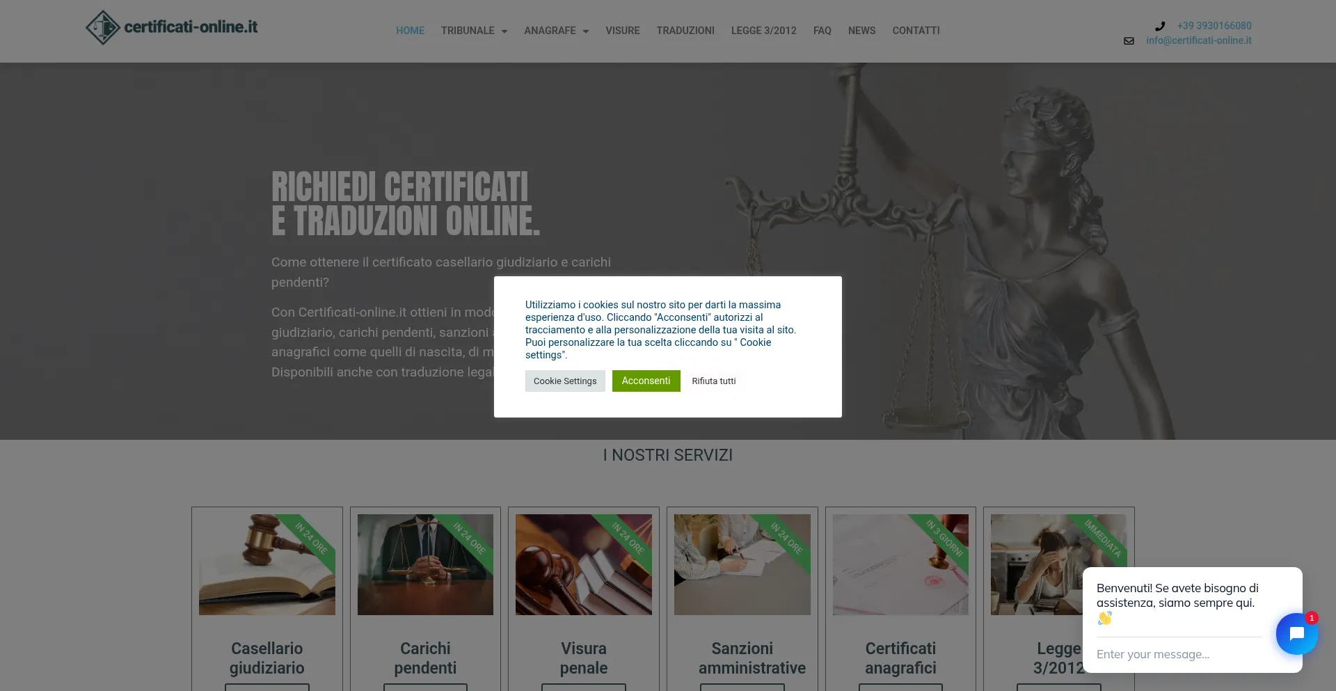 Certificati online - consegna rapida via email del casellario giudiziario carichi pendenti e altre pratiche del tribunale e anagrafe