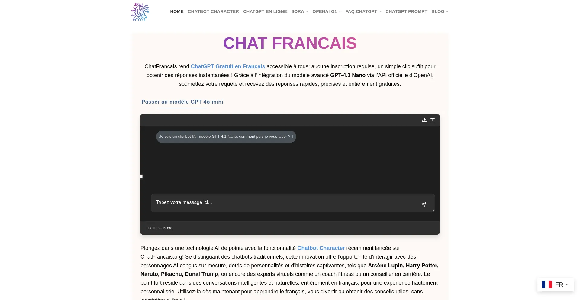 ChatFrancais offre ChatGPT gratuit en français! Sans inscription, en ligne, avec l’API officielle d’OpenAI et usage illimité!