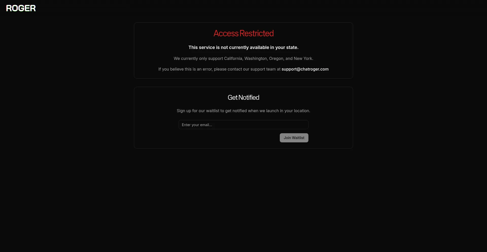 Access to Roger is currently restricted in your region due to local regulations.