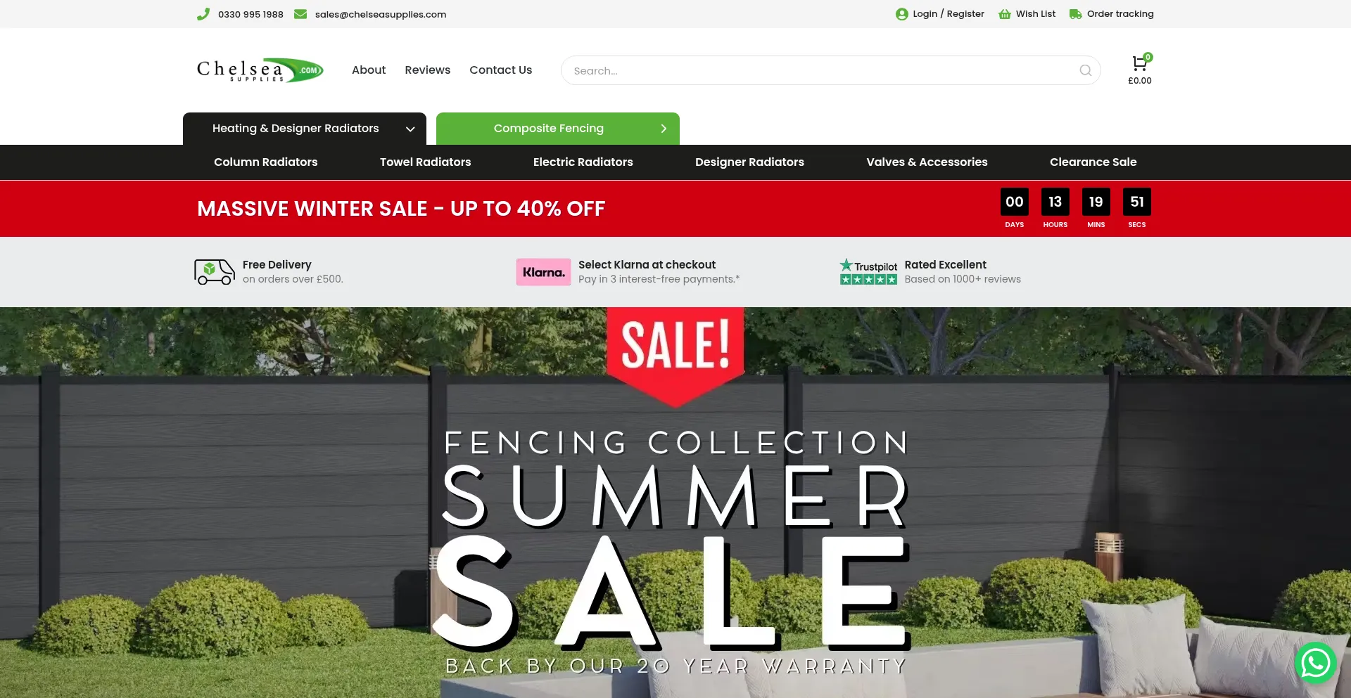 www.facebook.com static.cloudflareinsights.com chelseasupplies.com connect.facebook.net gtm.chelseasupplies.com o.clarity.ms widget.trustpilot.com x.klarnacdn.net api.whatsapp.com static.addtoany.com +10 más
