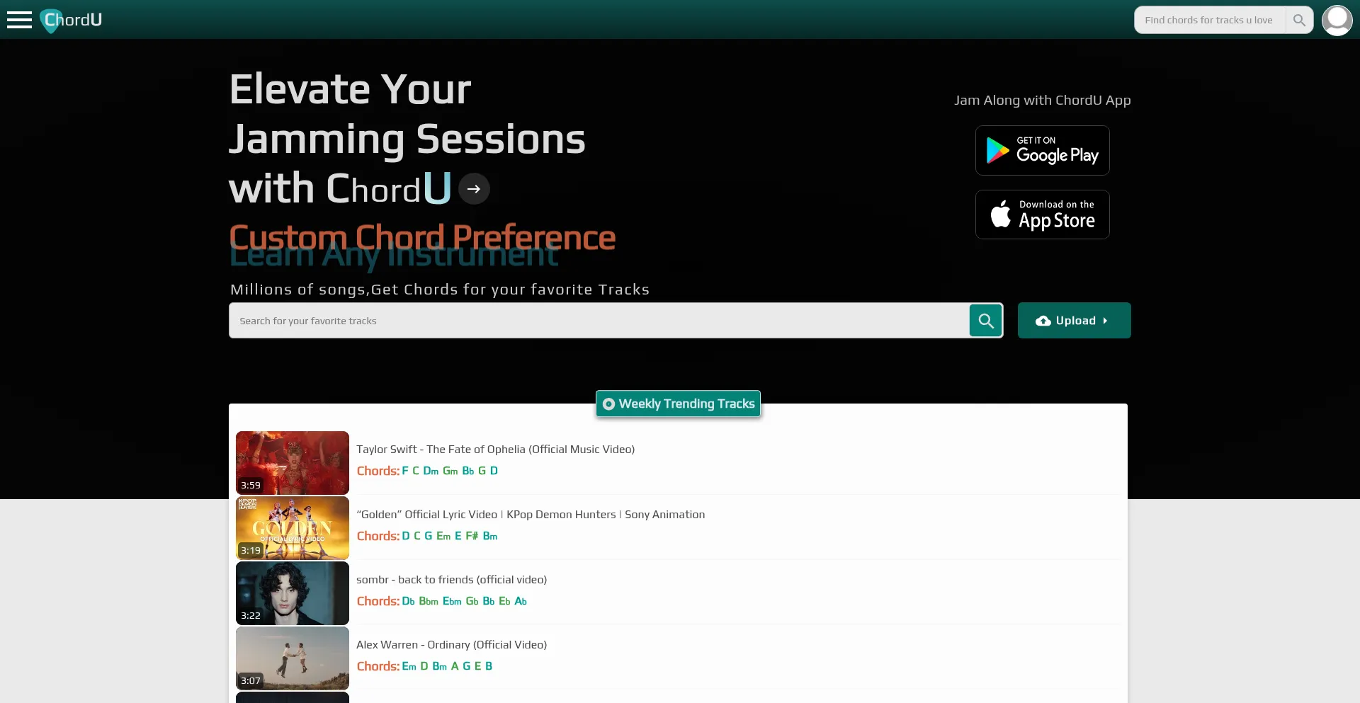 Get piano, ukulele & guitar chords with variations for any song you love, play along with chords, change transpose and many more.