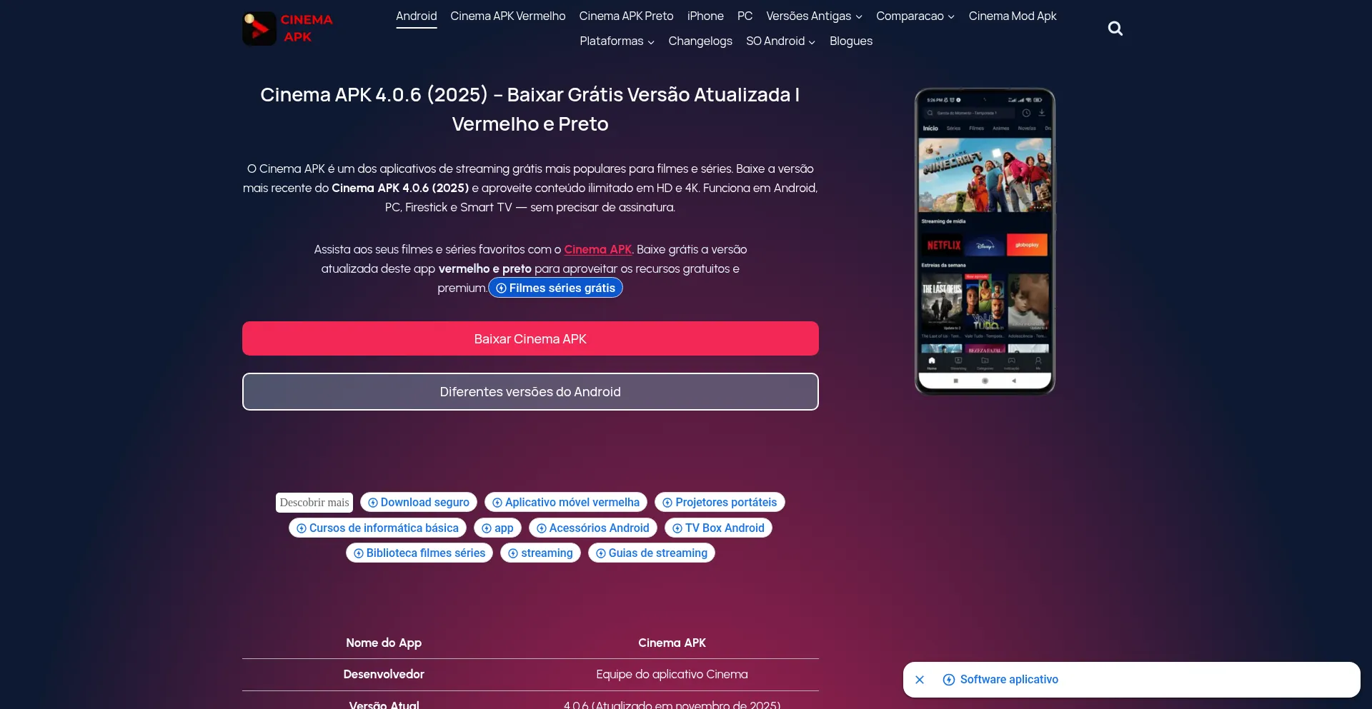 O Cinema APK é um app de streaming oficial e atualizado 2025. Baixe grátis e assista a filmes, séries, animes e documentários incríveis sem limite.
