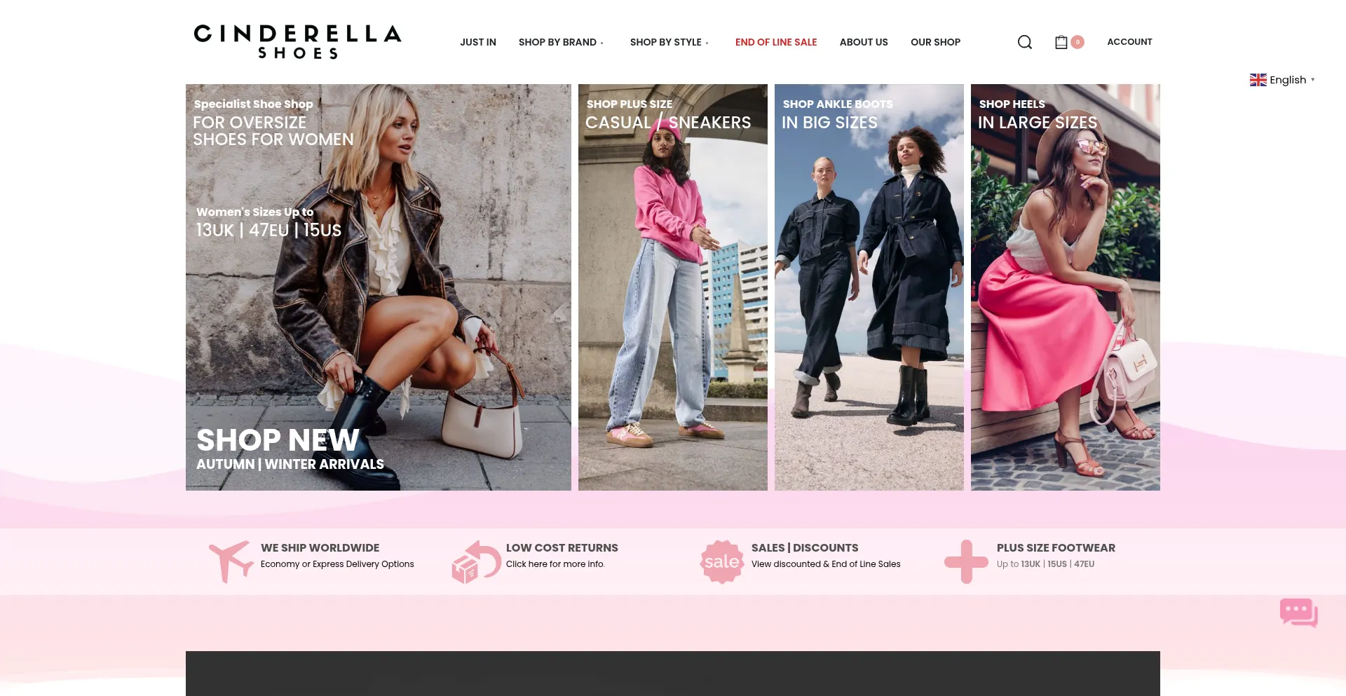 Specialist shoe shop for large size women's footwear. From a niche offering to an international favorite, Cinderella Shoes brings you a curated edit of heels, boots, flats, sand...