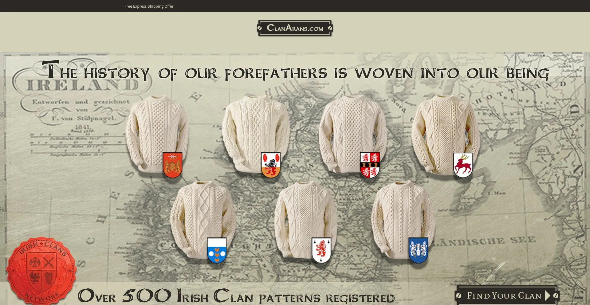 ClanArans.com has Ireland's largest collection of authentic hand knit Irish Sweaters. The most famous of Irish sweaters is the Aran Sweater. All our Aran Sweaters are made in Ir...
