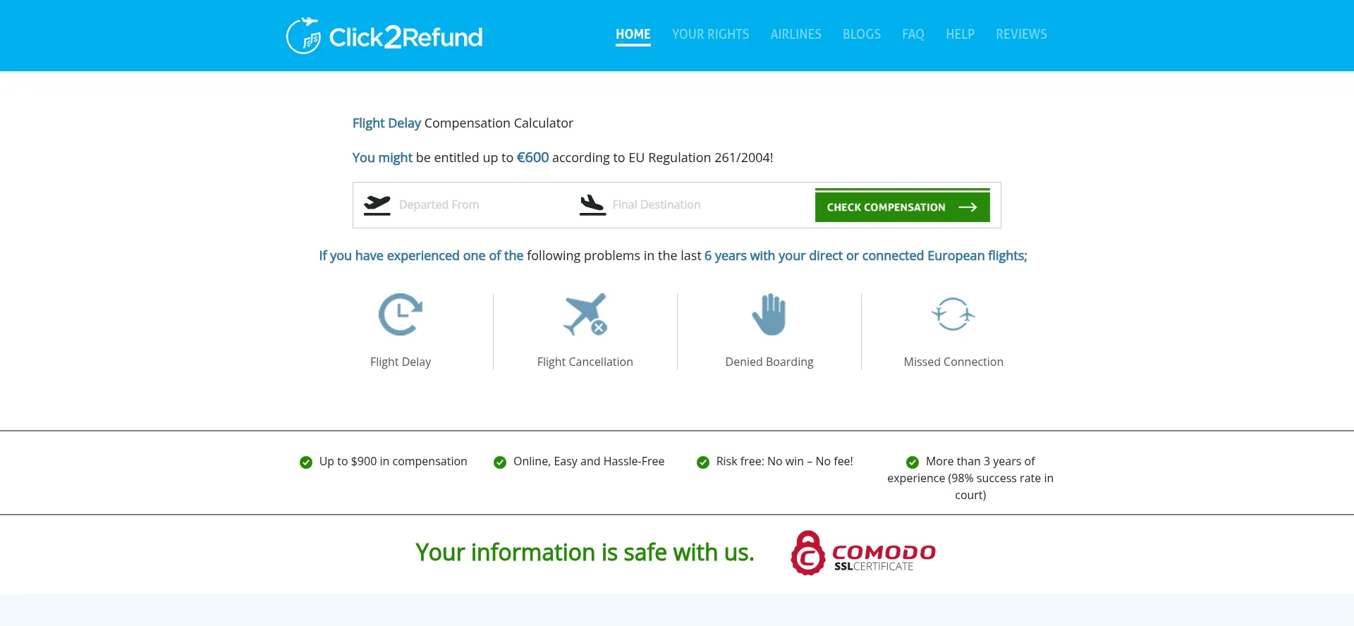 Claim your flight delay compensation of up to $600 quickly and easily with Click2Refund. Get the money you deserve for your delayed or cancelled flight.