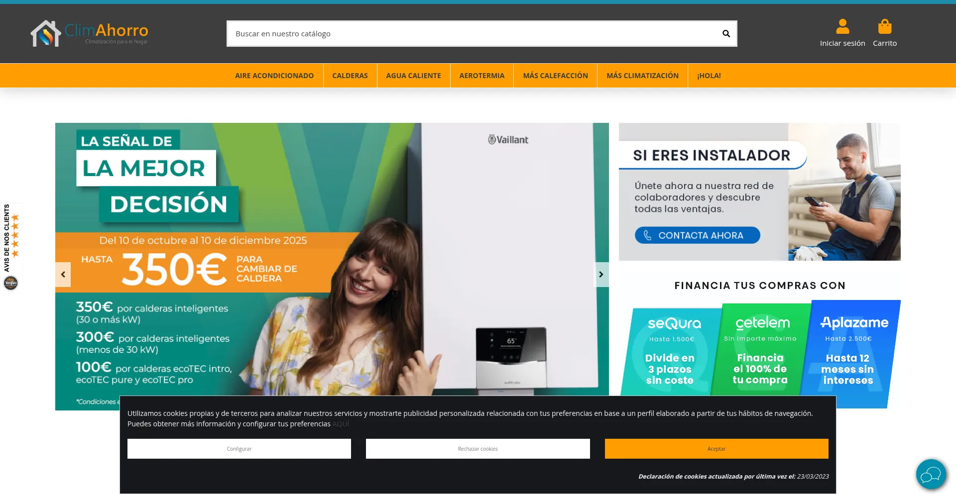 Compra online calderas de gas, de gasoil, aire acondicionado, estufas y mucho más. Aprovecha nuestras ofertas con envío gratis 24-72h.