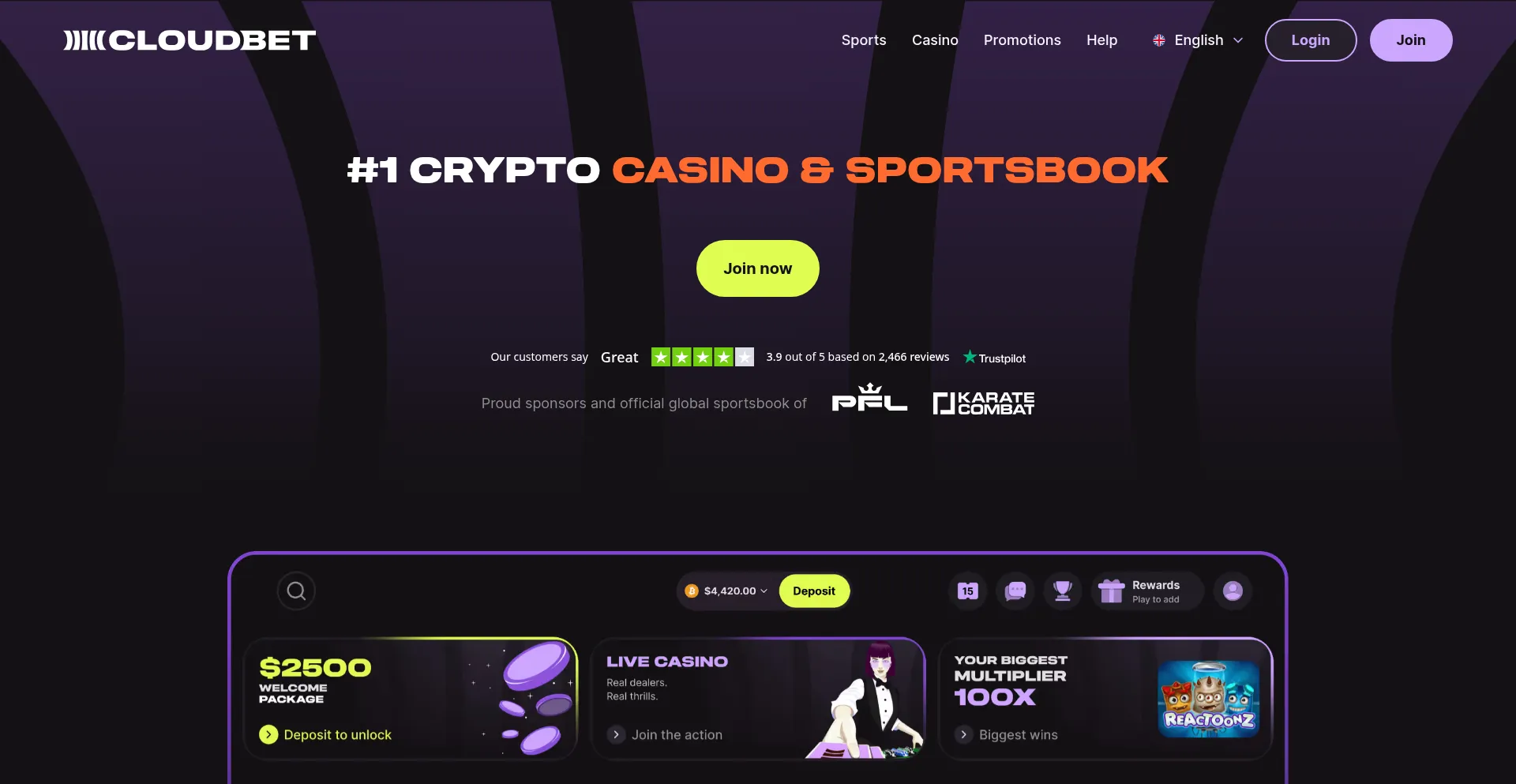 Cloudbet is the original crypto casino and sportsbook in 2025 and exclusive partner of the biggest names in combat sports. Unlock a $2,500 Welcome Package.