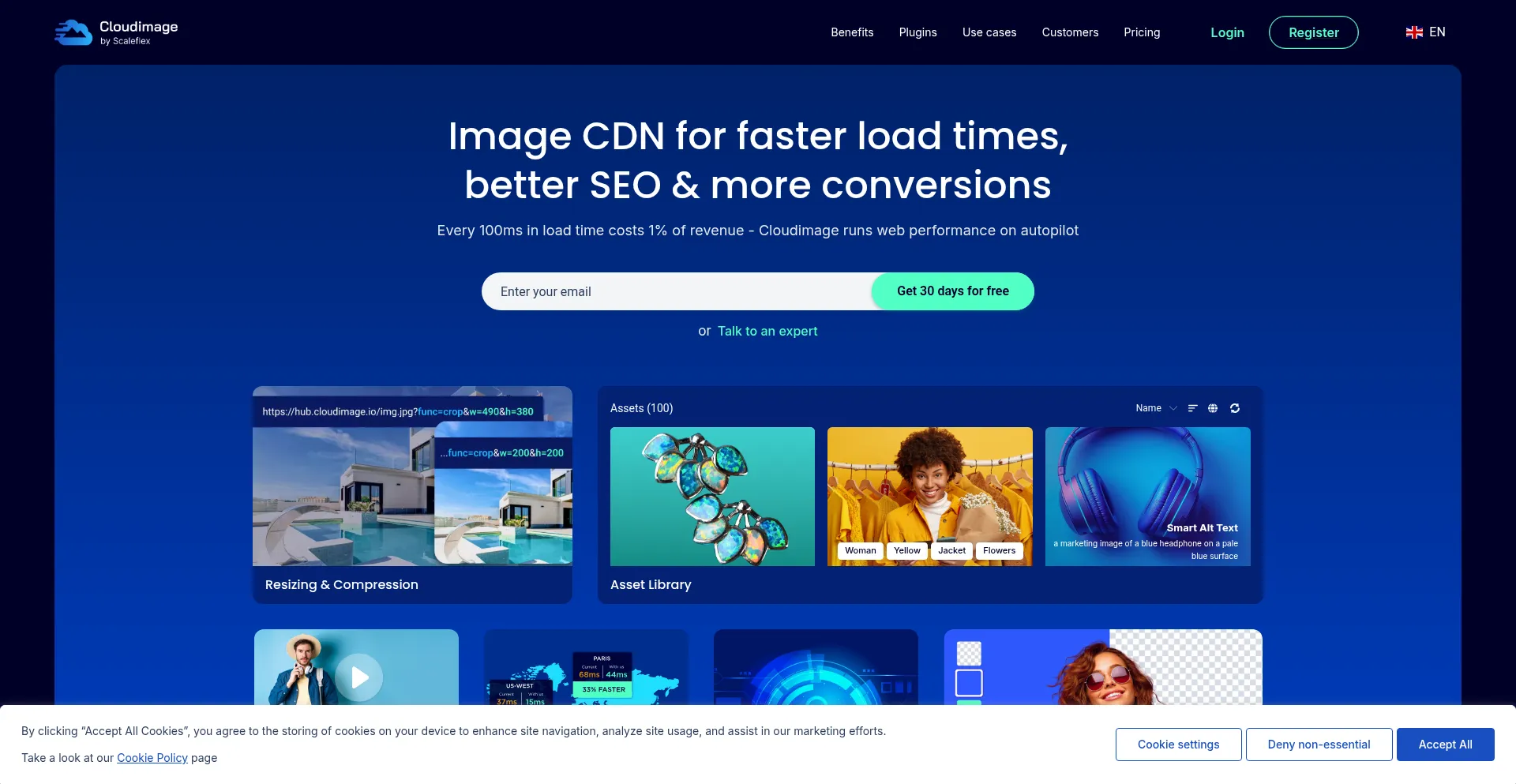 Cloudimage converts to the best format, optimizes the size quality ratio and delivers your web images to your customers through our rocket fast image CDN network worldwide.