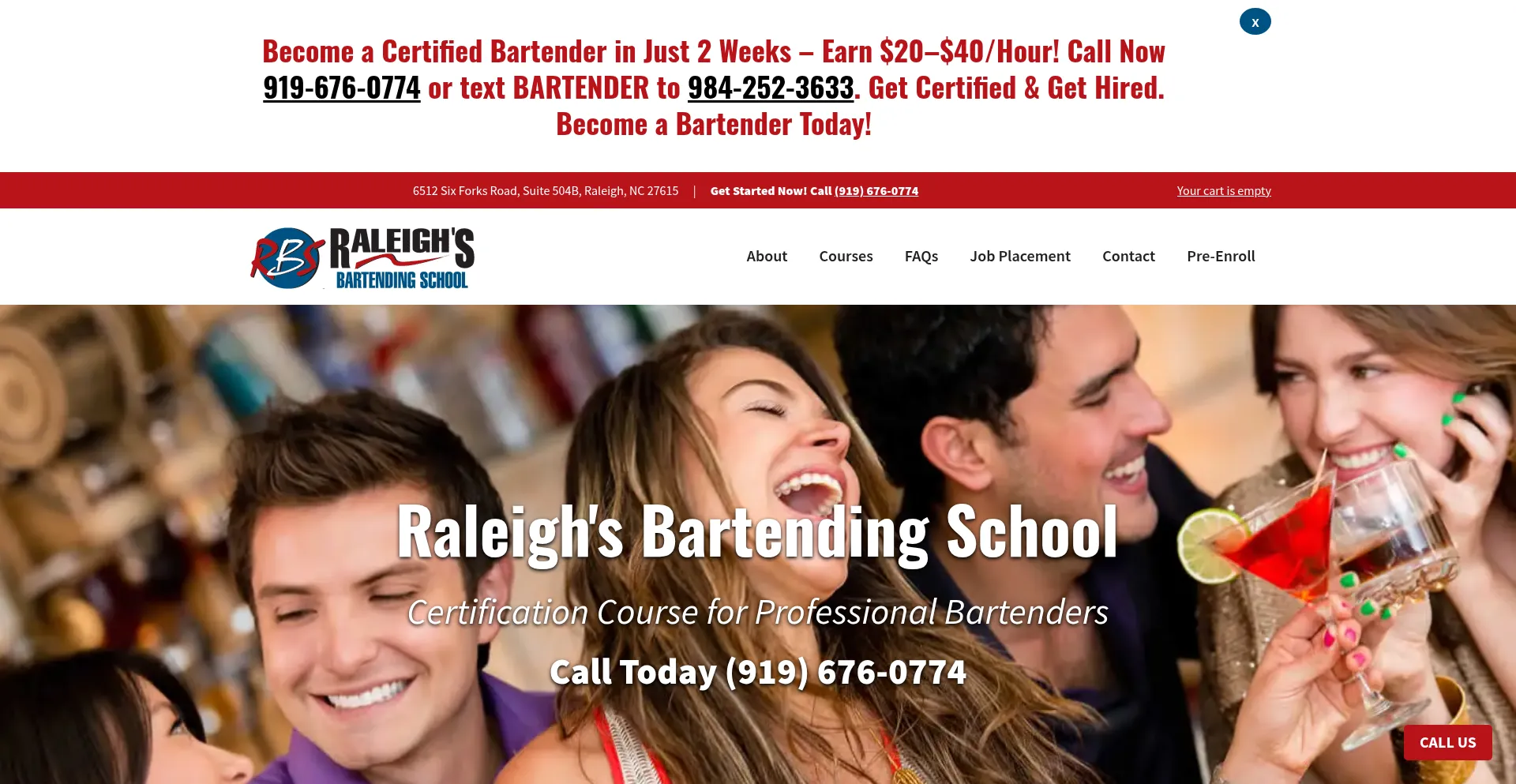 Raleigh's Bartending School New Bartending Jobs Weekly! Bartending School is a constructive, low investment / high return and accelerated way to achieve a high-income career as ...