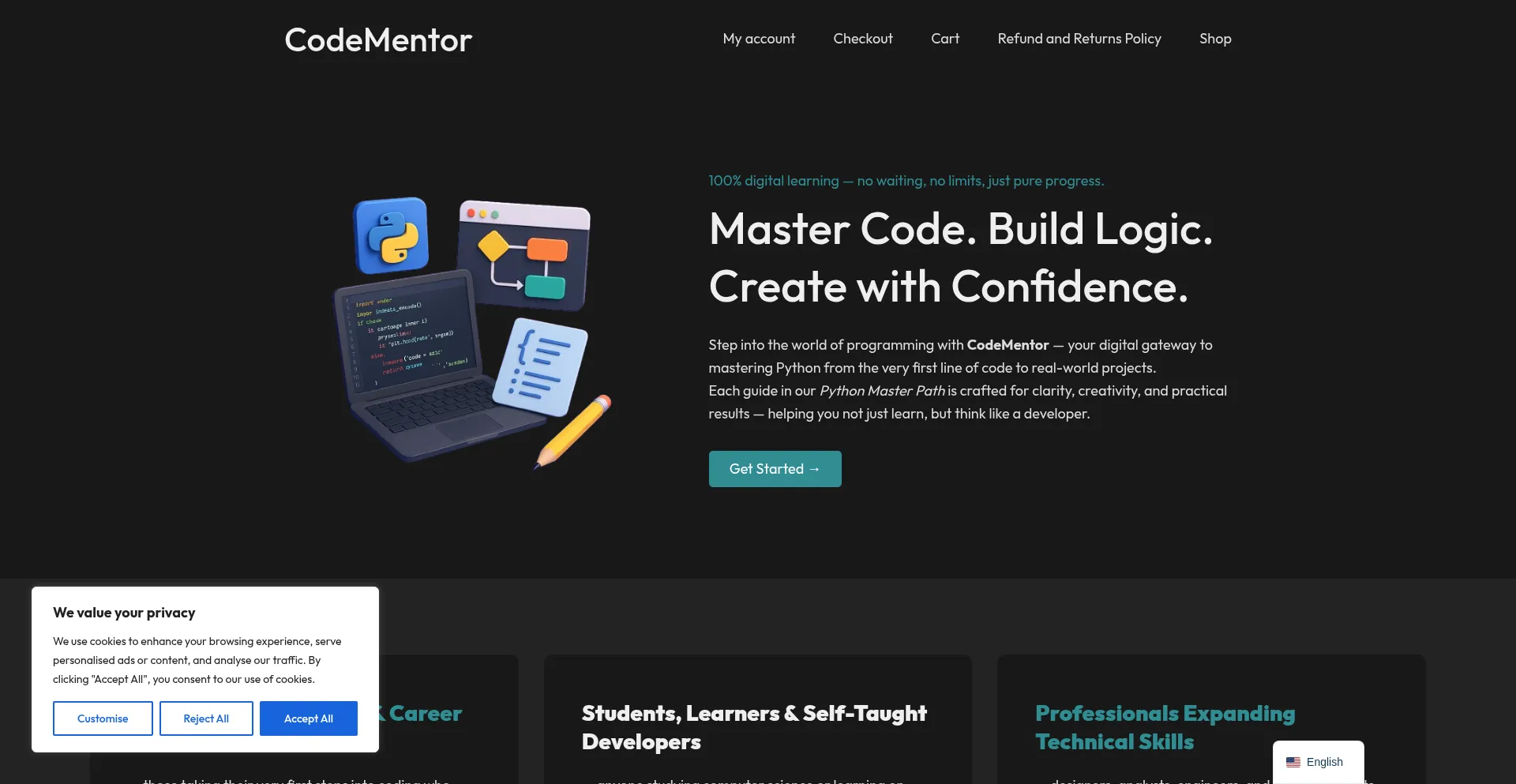 El sitio web implementa mecanismos de consentimiento de cookies en cumplimiento con regulaciones de privacidad como GDPR o CCPA. Esto demuestra que code-mentor.site adhiere a estándares de protección de datos y proporciona a los usuarios control sobre prácticas de recolección de datos personales.