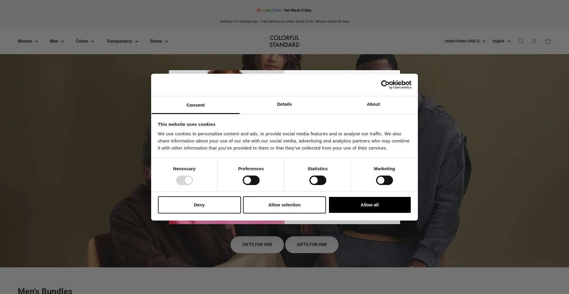 El sitio web implementa mecanismos de consentimiento de cookies en cumplimiento con regulaciones de privacidad como GDPR o CCPA. Esto demuestra que colorfulstandard.com adhiere a estándares de protección de datos y proporciona a los usuarios control sobre prácticas de recolección de datos personales.