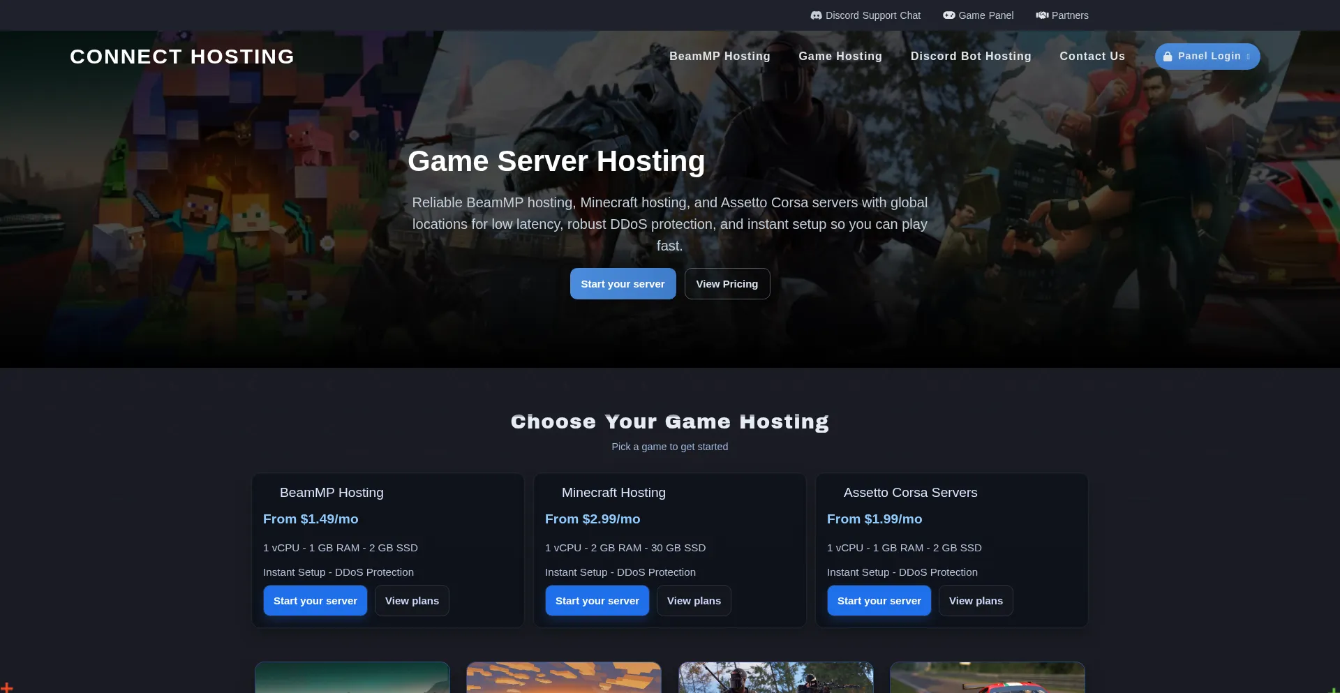 Game Server Hosting from $1.49/mo | BeamMP, Minecraft & Assetto | Connect Hosting