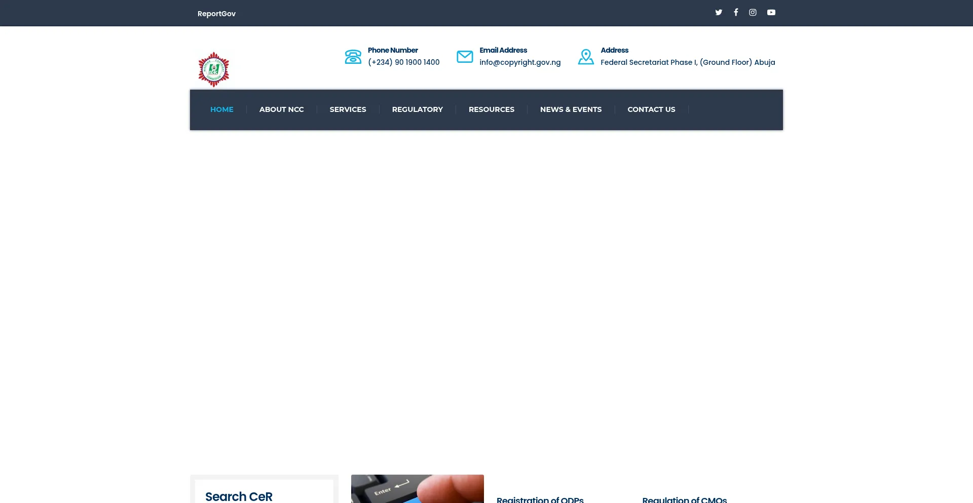 La presencia de enlaces de redes sociales en el sitio web indica que copyright.gov.ng mantiene cuentas oficiales en redes sociales, lo que es un indicador positivo de credibilidad y compromiso.