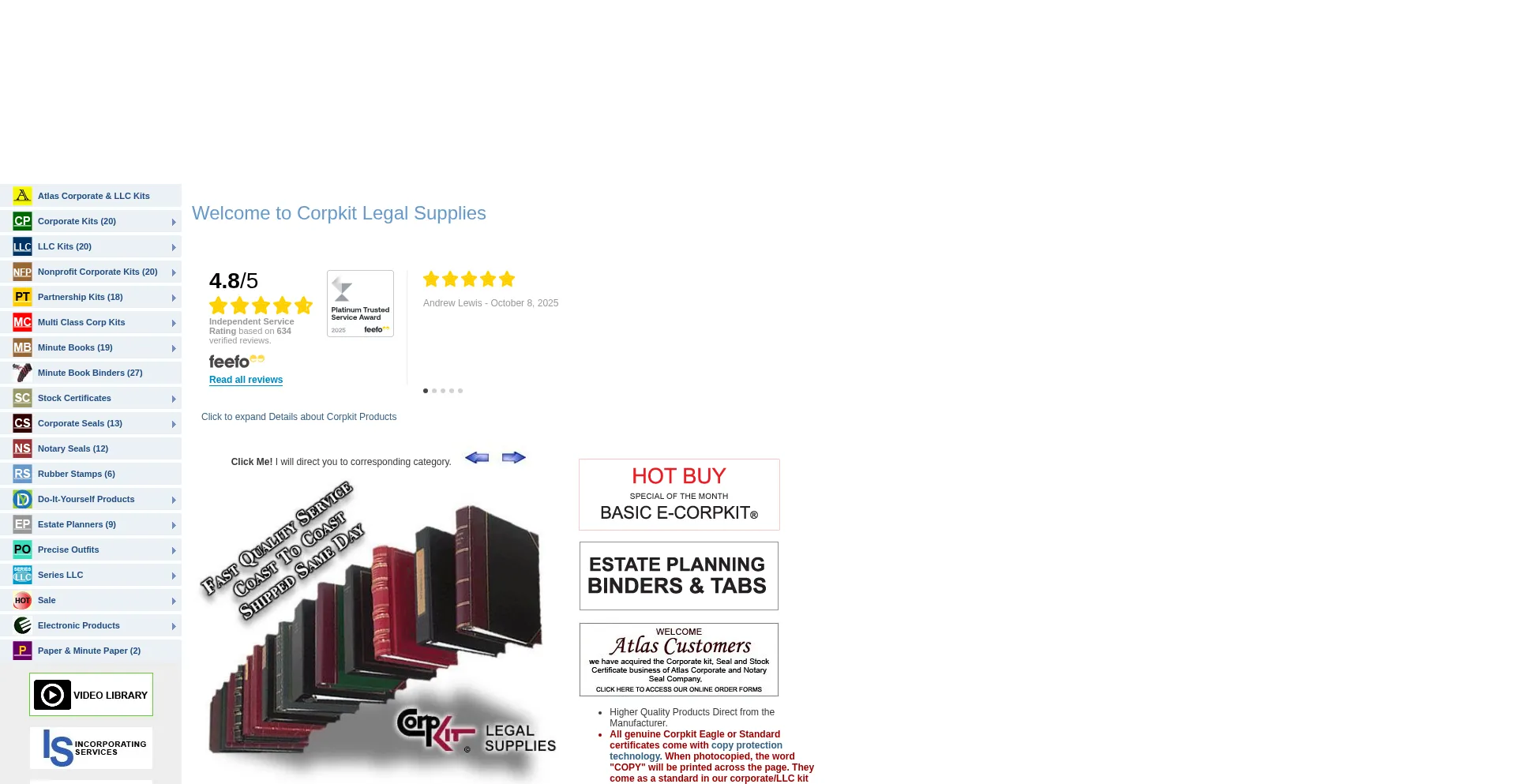 Corporate Kits, LLC kit, Stock Certificates, Share Certificate, Embossing Corporate Seals, Minute books, Estate Planners at CorpKit.com. Same Day Shipping. Corpkit Legal Supplie...