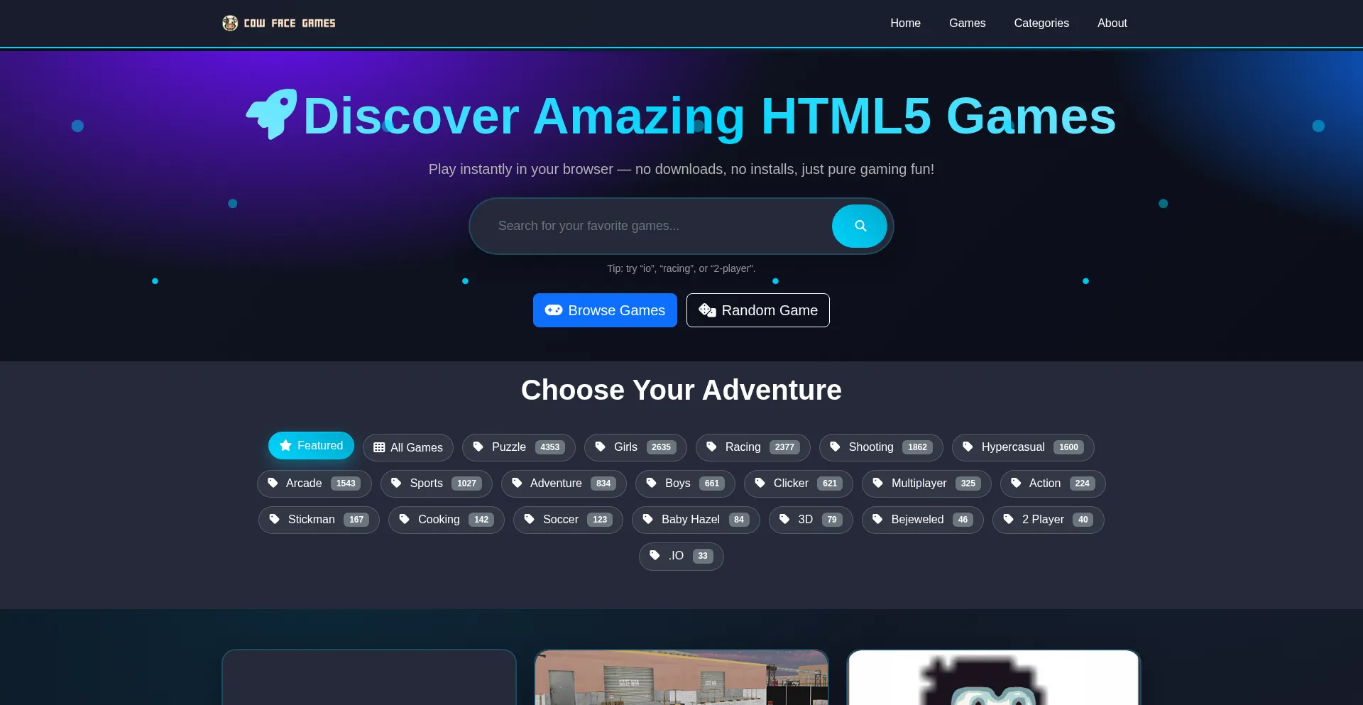 Play free HTML5 games instantly in your browser. No downloads. Discover action, puzzle, sports, and more — 18,776 games available.