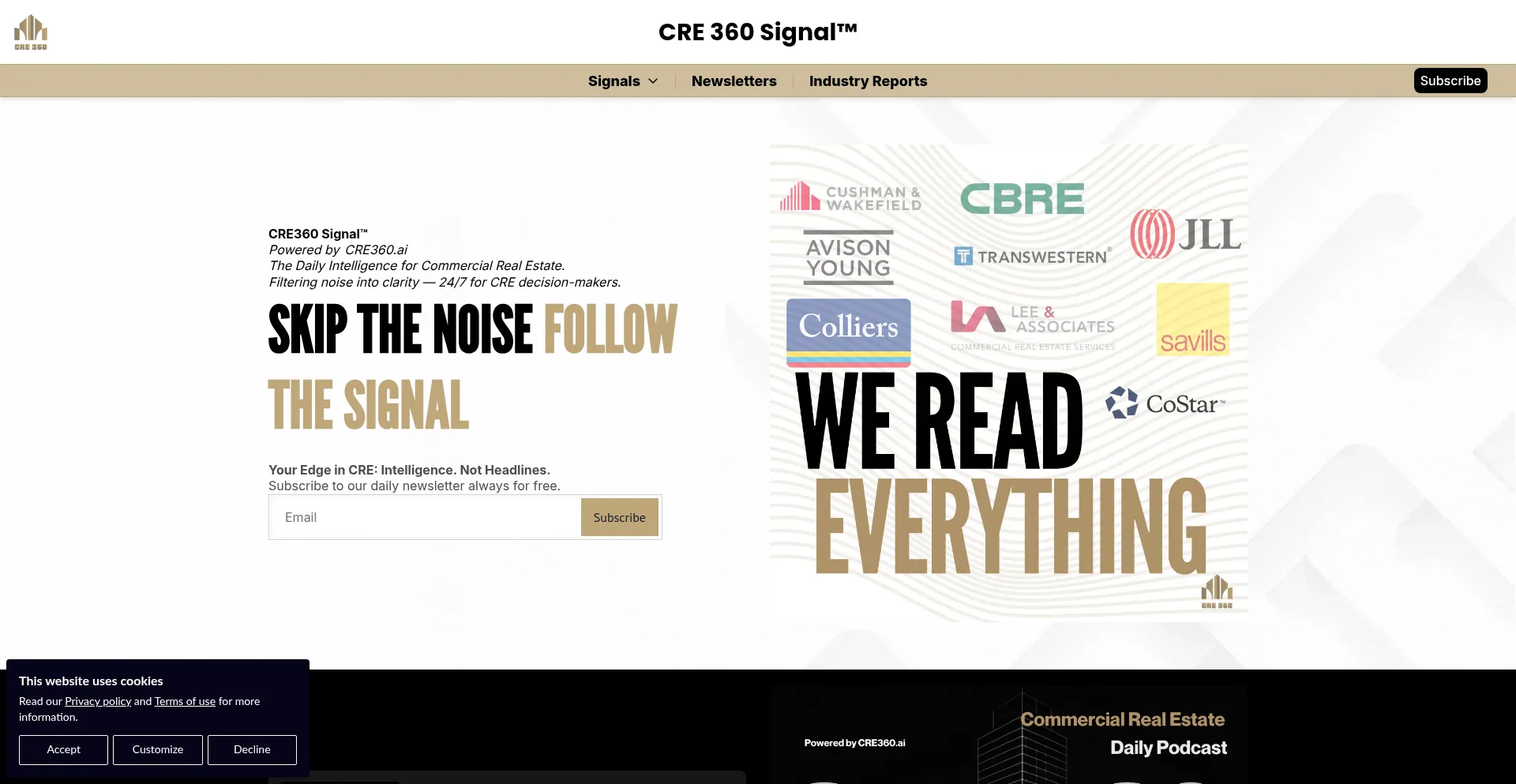 Curated, AI-powered briefings on commercial real estate. Trusted data, sharp analysis, and the daily signal investors and operators follow. Powered by CRE360.ai