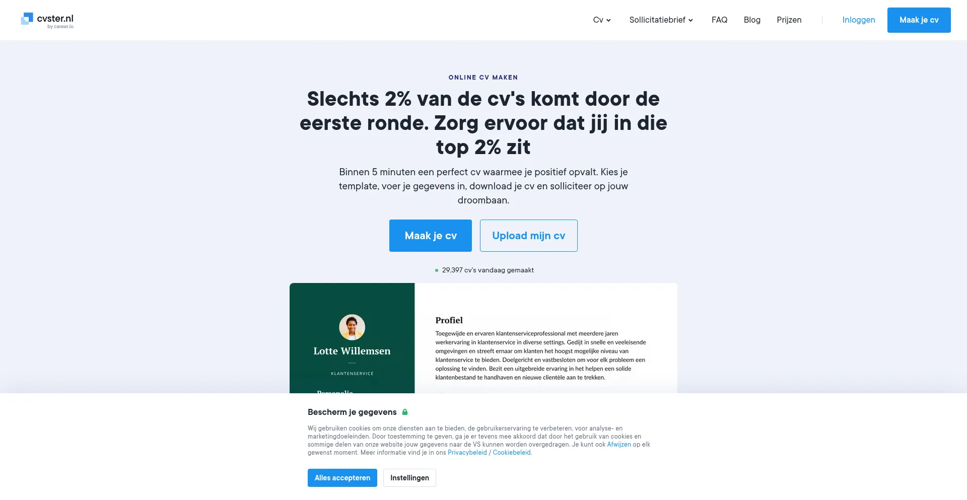 Cvster.nl Reseña del sitio web